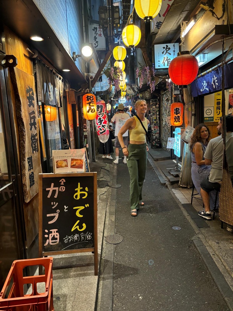 To wrap up the evening, we continued exploring and stumbled upon Shinjuku Golden-Gai. This vibrant area is filled with tiny bars, each with its own quirky personality. It was the perfect spot for drinks and a chance to meet people from around the world. With so many options and bars staying open late, it was the ideal way to end our first day in Tokyo!