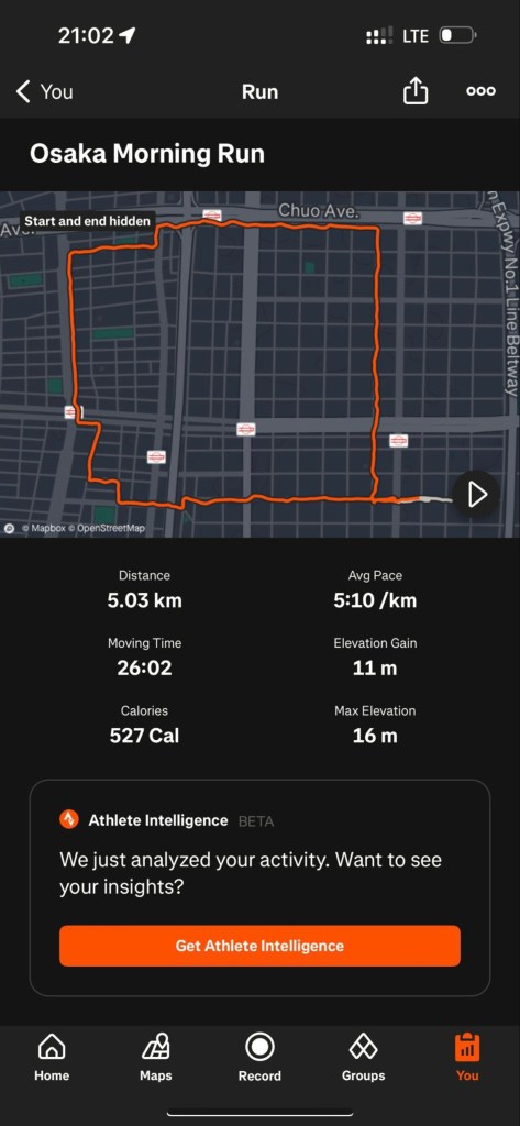 If you’re planning to get your miles in while staying in this part of Osaka, I’d recommend timing your run outside the rush hour window. Early mornings or later in the evening might make for a more enjoyable experience. Still, it’s a great way to soak in the local energy before heading off to your next destination!
