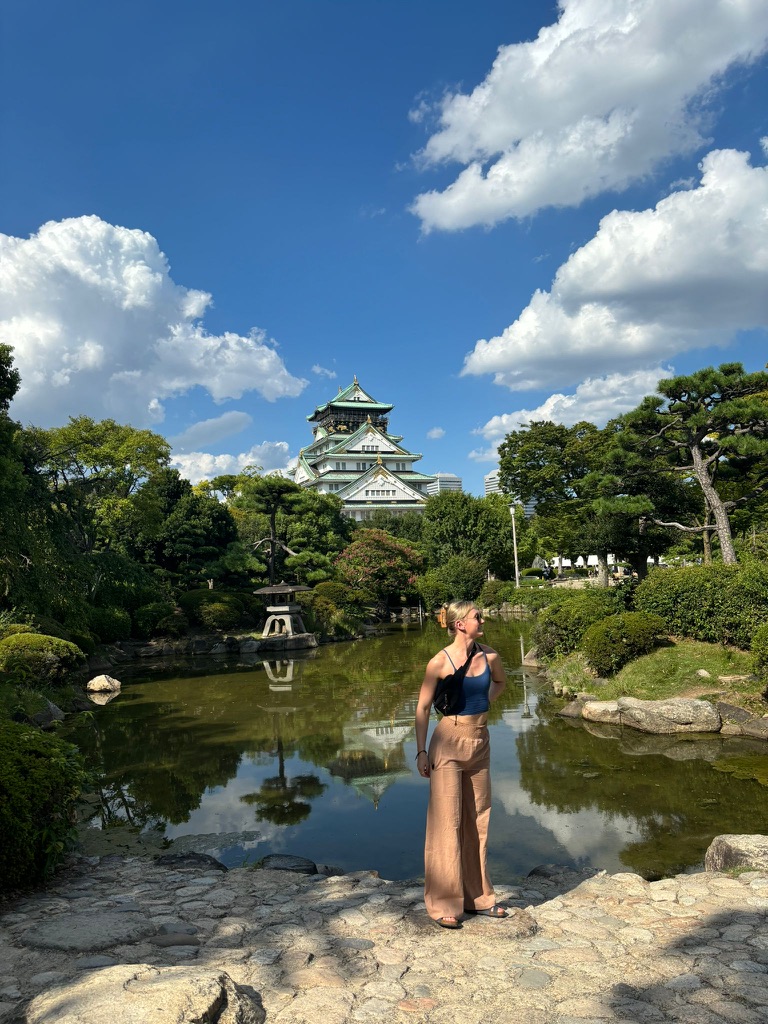 To kick off our only day in Osaka — and our very first time in Japan — we started by visiting Osaka Castle. This iconic landmark is incredibly charming, surrounded by a scenic park that leads up to the castle itself. It’s a fantastic spot for runners, too! While the area was bustling, it didn’t feel overwhelming.